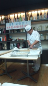 気候の関係で南の方から収穫が始まるため、日本で一番早いそばフェア「熊本春まきそば」というキャンペーンでした。我孫子市の「そば玄」の梶縄さんが、デモンストレーション。