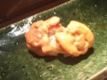 生姜に付けたあんきもや適度に焼いたホタテに煎った七味をふり、